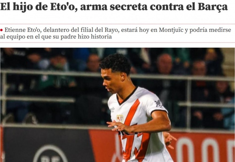 2月17日訊 《世界體育報》報道,埃托奧的兒子埃蒂安-埃托奧今晚將進入巴列卡諾一線隊名單,可能出戰(zhàn)巴薩。