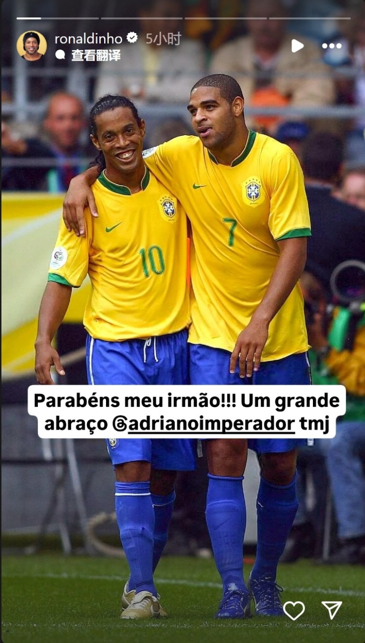 2月18日訊 小羅更新社媒動態(tài),祝前巴西隊友阿德里亞諾生日快樂。阿德里亞諾迎來43歲生日,小羅社媒曬出與他昔日在國家隊的合照,并配文:“祝你生日快樂我的兄弟!給你大大的擁抱!” 本文標簽: 足球 巴西 意甲 國際米蘭