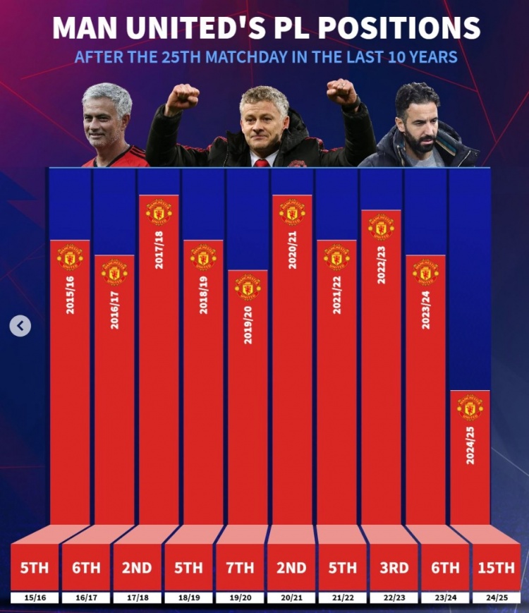 2月18日訊 曼聯(lián)在本賽季表現(xiàn)低迷,阿莫林接手后成績反而持續(xù)下滑,《轉(zhuǎn)會市場》統(tǒng)計了近10年曼聯(lián)在英超25輪后的同期排名情況。近10年曼聯(lián)英超25輪后排名:16年,第517年,第618年,第219年,第520年,第721年,第222年,第523年,第324年,第625年,第15 本文標(biāo)簽: 足球 英超 曼聯(lián)