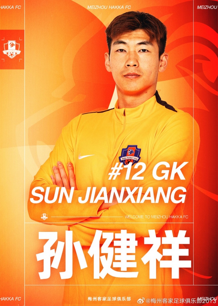 孫健祥身體高大,反應(yīng)敏捷,具備良好的撲救能力和門前判斷力,有豐富的國內(nèi)外比賽經(jīng)驗(yàn),新賽季將身披12號代表梅州客家征戰(zhàn)各項(xiàng)賽事。