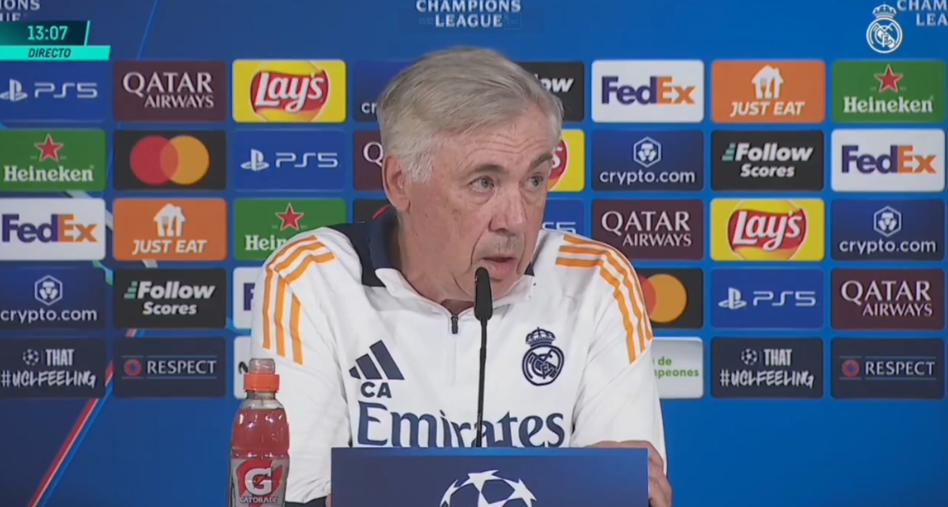 安切洛蒂:(我認(rèn)為)他不是真的這么想,但明天我會(huì)在比賽前問他。我們不認(rèn)為有99%的把握(晉級),我們只有一點(diǎn)小優(yōu)勢,我們必須好好利用。我們必須踢出和首回合一樣的比賽,因?yàn)槟菆霰荣愡M(jìn)行得很順利。