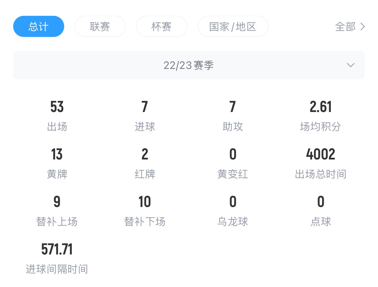 卡塞米羅22/23賽季英超數(shù)據(jù)↓