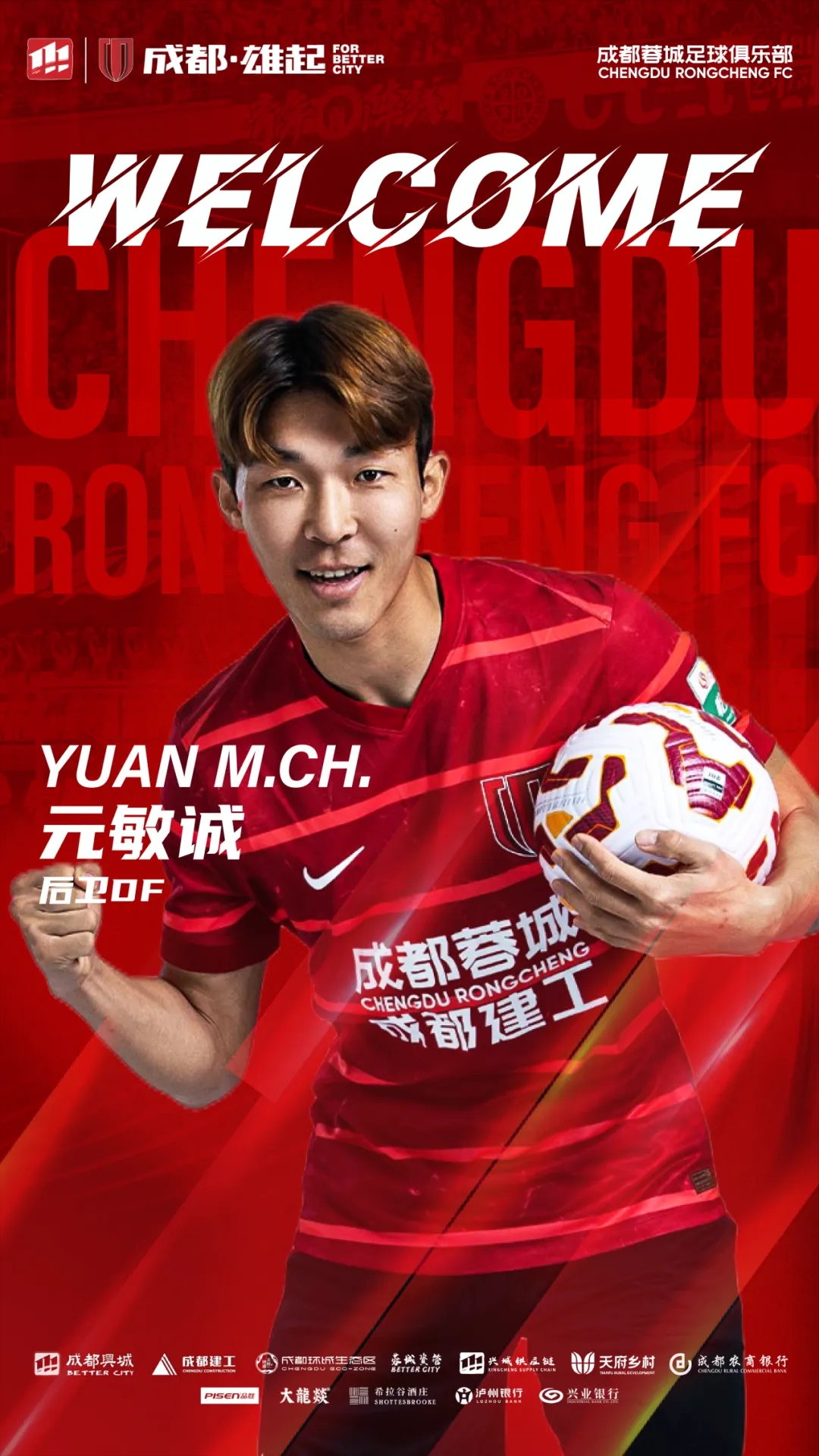 經(jīng)與球員本人友好協(xié)商并達(dá)成一致,元敏誠正式加盟成都蓉城足球俱樂部。