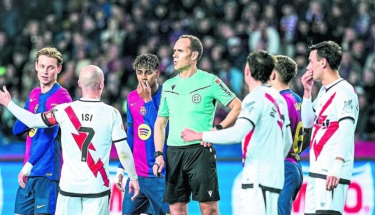 巴薩在本場比賽第26分鐘獲得點(diǎn)球,但在判罰點(diǎn)球之前主裁判梅萊羅-洛佩斯當(dāng)時(shí)沒有對西斯明顯摟抱伊尼戈-馬丁內(nèi)斯的動(dòng)作做出反應(yīng),而VAR裁判迪亞茲德梅拉提示了主裁判,他認(rèn)為這個(gè)動(dòng)作為犯規(guī)動(dòng)作,而這個(gè)判罰也遭到了客隊(duì)巴列卡諾球員的齊聲抗議。