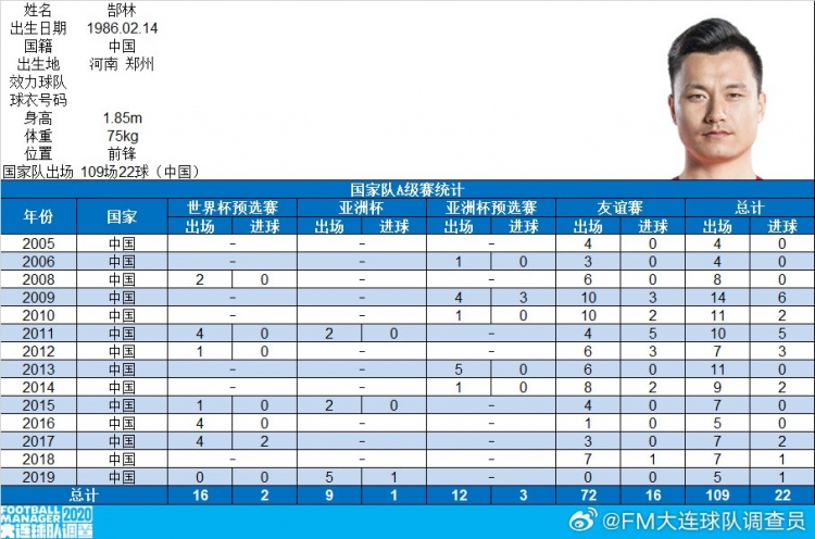 2月18日訊 在2月16日中國足協(xié)為郜林舉辦退役儀式后,博主“FM大連球隊(duì)調(diào)查員”在社媒公布了郜林的生涯數(shù)據(jù)統(tǒng)計(jì)。