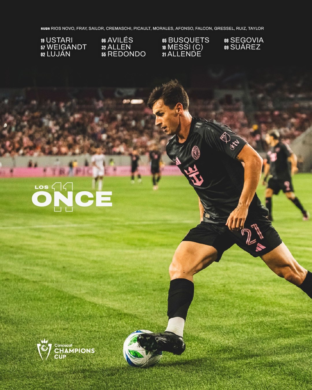 邁阿密國際首發(fā):19-烏斯塔里、6-阿維萊斯、2-盧揚、5-布斯克茨、55-小雷東多、8-塞戈維亞、57-韋甘特、32-阿倫、21-阿連德、10-梅西、9-蘇亞雷斯