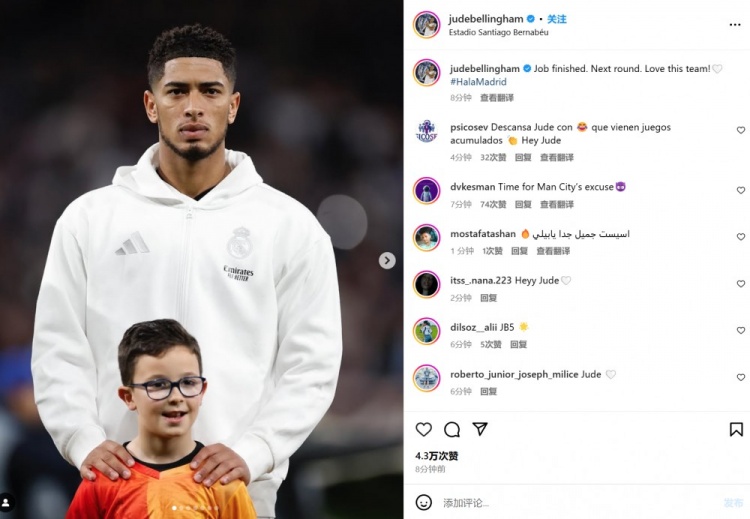 2月20日訊 皇馬在本輪歐冠3-1擊敗曼城,得以挺進(jìn)歐冠16強(qiáng)戰(zhàn),貝林厄姆首發(fā)踢滿全場。貝林厄姆也在賽后通過社媒曬出自己的比賽照,并配文:“任務(wù)完成!晉級下一輪。我愛這支球隊!” 本文標(biāo)簽: 足球 西甲 皇家馬德里 英超 曼城 歐冠