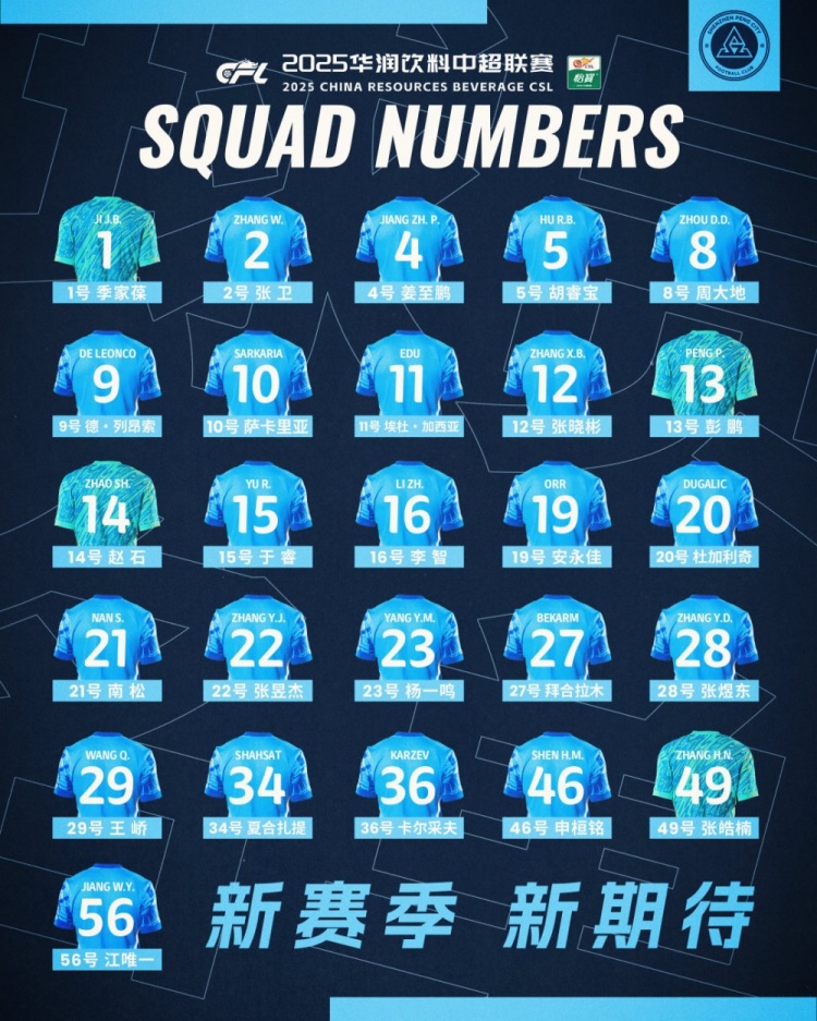 新賽季,新期待!2025華潤飲料中超聯(lián)賽深圳新鵬城一線隊名單正式公布!