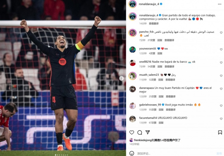 3月6日訊 在本輪歐冠,巴薩在長時間10人作戰(zhàn)的不利局面下,最終1-0小勝本菲卡。隊長阿勞霍也在個人社媒曬出仰天長嘯慶祝照,配文寫道:“全隊憑借努力、決心以及意志踢出一場精彩的比賽,讓我們下一回合再來!” 本文標簽: 足球 西甲 巴塞羅那