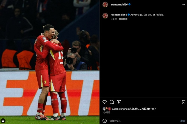 3月7日訊 歐冠1/8決賽首回合中,利物浦1-0絕殺巴黎。賽后,阿諾德更新社媒,慶祝球隊取得這場來之不易的勝利。阿諾德曬出和進球功臣埃利奧特相擁的照片,并寫道:占下先機,安菲爾德球場再見。北京時間3月12日凌晨4:00,利物浦將回到主場,和巴黎展開次回合的較量。 本文標(biāo)簽: 足球 英超 利物浦 歐冠