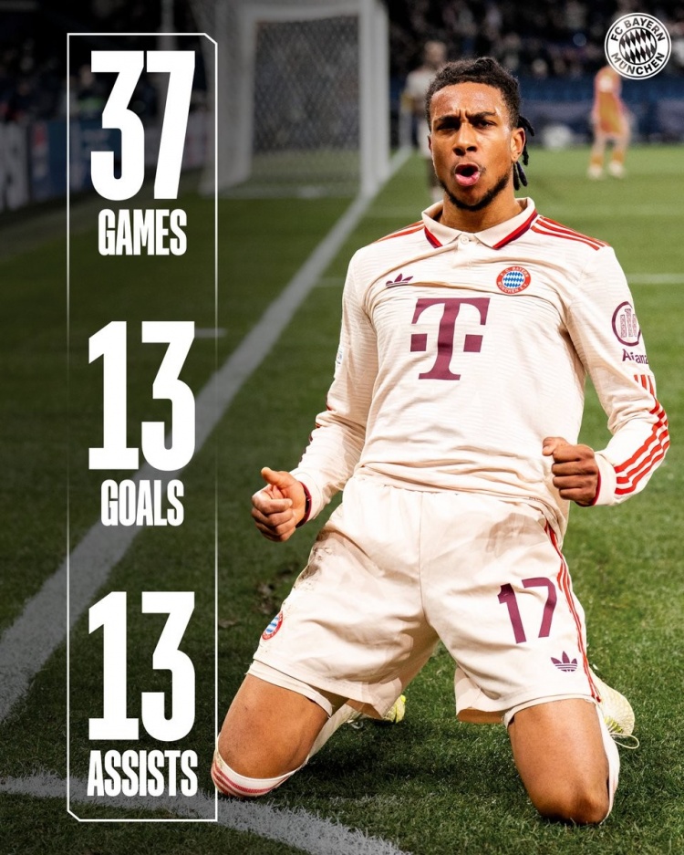 3月8日訊 拜仁在本周的歐冠焦點戰(zhàn)3-0完勝勒沃庫森,奧利塞傳中助攻凱恩頭槌首開紀錄。第9分鐘,奧利塞右路加速突破傳中送到禁區(qū),禁區(qū)內(nèi)搶點的凱恩頭槌破門。數(shù)據(jù)統(tǒng)計顯示,23歲的法國邊鋒在去年夏天5300萬歐元從水晶宮轉(zhuǎn)會拜仁,本賽季各項賽事為拜仁出戰(zhàn)37場,貢獻13球13助攻。 本文標簽: 足球 德甲 拜仁慕尼黑