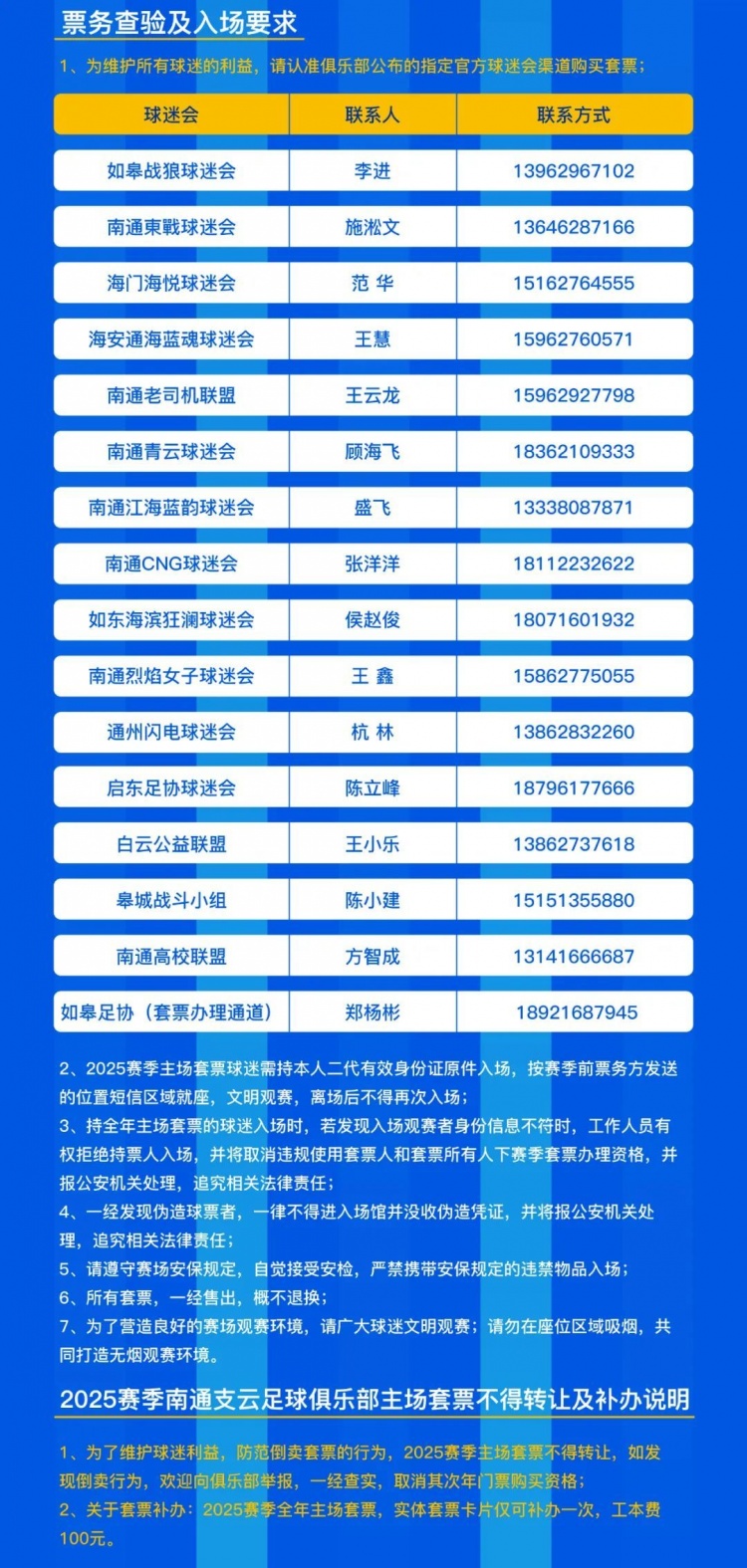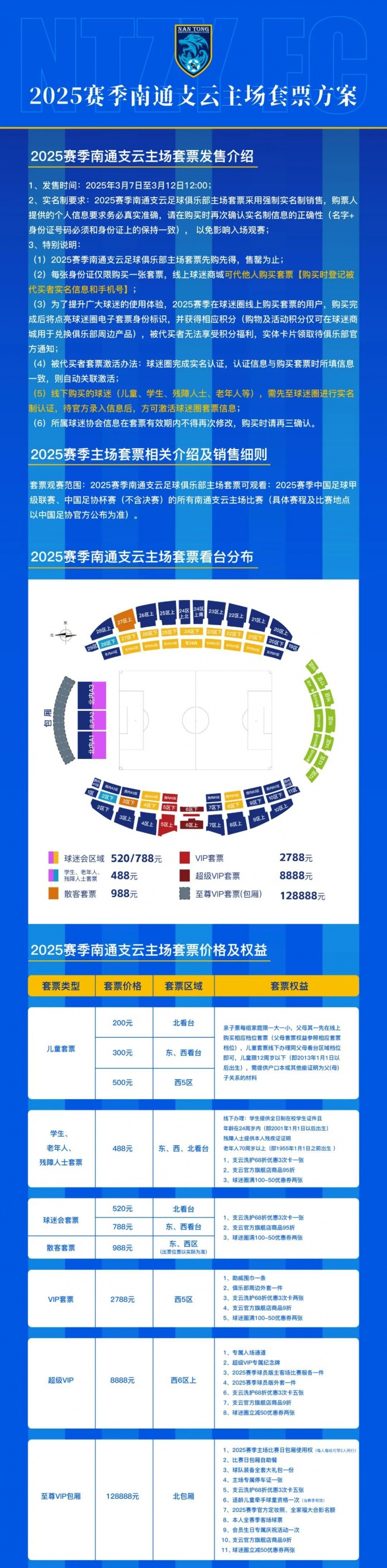 ?(1)2025賽季南通支云足球俱樂(lè)部主場(chǎng)套票先購(gòu)先得,售罄為止;