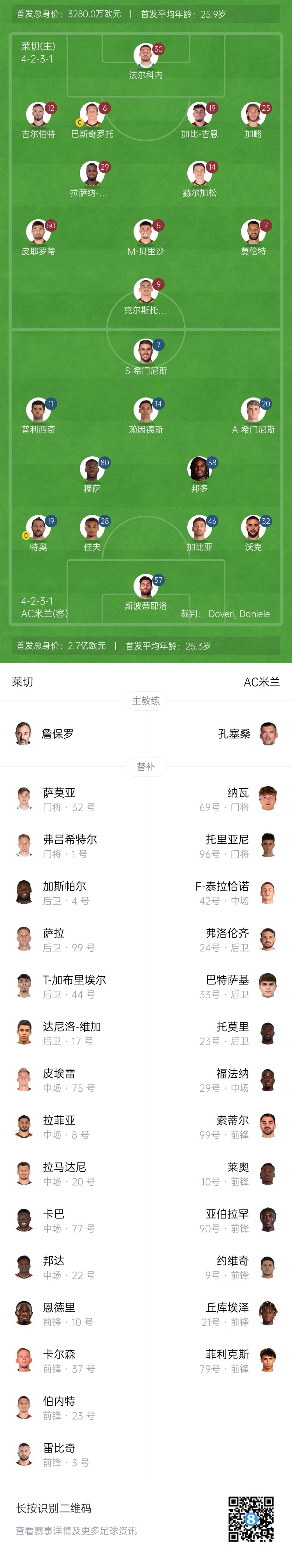 3月9日訊 意甲第28輪,萊切主場迎戰(zhàn)AC米蘭比賽即將打響。賽前首發(fā)出爐。