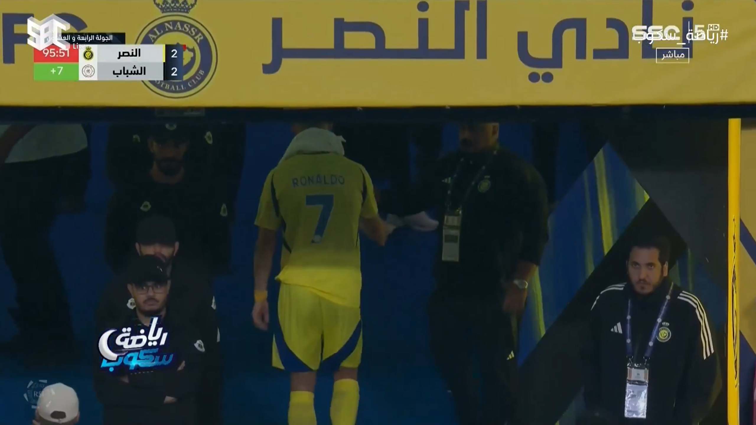 第24輪沙特聯(lián),C羅在上半場補(bǔ)時第7分鐘破門并在第71分鐘被換下。但電視鏡頭捕捉到C羅在球隊(duì)被2-2扳平后的憤怒畫面,并且他選擇在終場哨聲吹響前提前走向球員通道。
