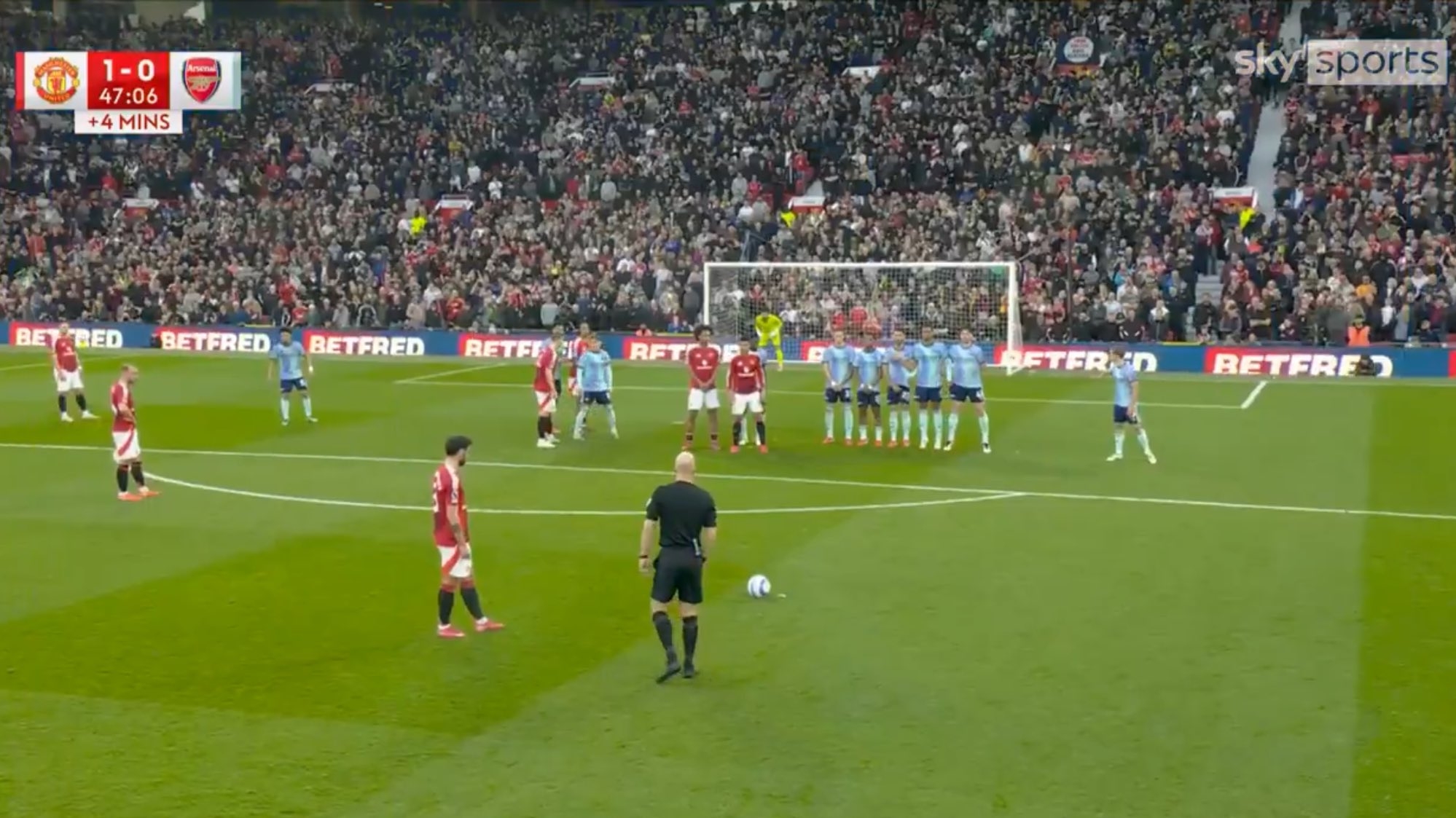 不少評論員和球迷都指出,B費主罰任意球時阿森納的人墻看來似乎距離過遠。