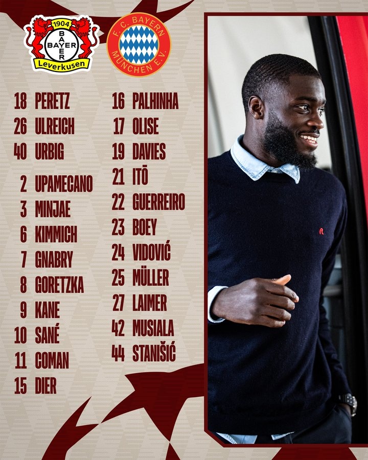 3月11日訊 北京時(shí)間3月12日周三凌晨4點(diǎn),拜仁慕尼黑將在歐冠1/8決賽次回合客場挑戰(zhàn)勒沃庫森,首回合,拜仁在主場3-0獲勝。今天,拜仁公布了次回合大名單,名單如下:
