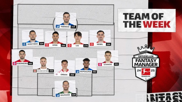 3月12日訊 德甲第25輪聯(lián)賽已經(jīng)完賽,德甲官方也評(píng)出了本輪聯(lián)賽最佳陣容,美因茨和霍芬海姆各3將在列。
