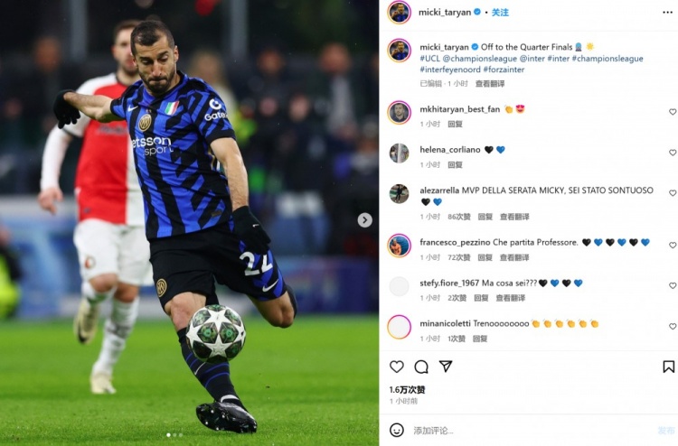 3月12日訊 國米在本輪歐冠主場2-1再次擊敗費耶諾德,他們將在歐冠八強戰(zhàn)和拜仁相遇。隊內多位大將也通過社媒曬照慶祝晉級。