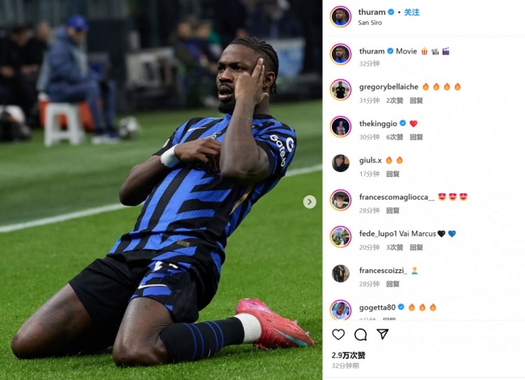 進球功臣小圖拉姆則曬出自己的滑跪慶祝照,并配文:“電影時刻!”