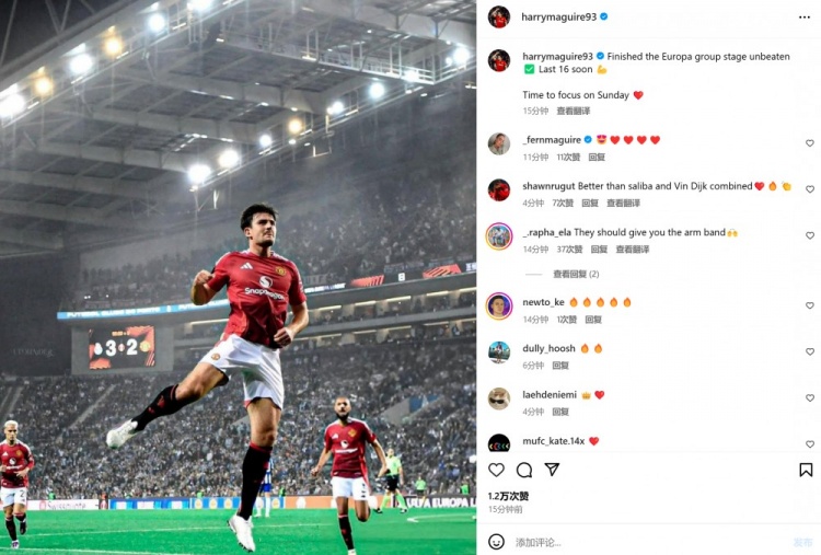 曼聯(lián)在歐聯(lián)杯取得5連勝,以8場不敗戰(zhàn)績進(jìn)入16強(qiáng),馬奎爾也在個(gè)人社媒曬出本場慶祝照片:“以不敗戰(zhàn)績結(jié)束小組賽,16強(qiáng)戰(zhàn)很快到來!現(xiàn)在是時(shí)候?qū)W⒂谥苣┑谋荣惲恕!?/p>