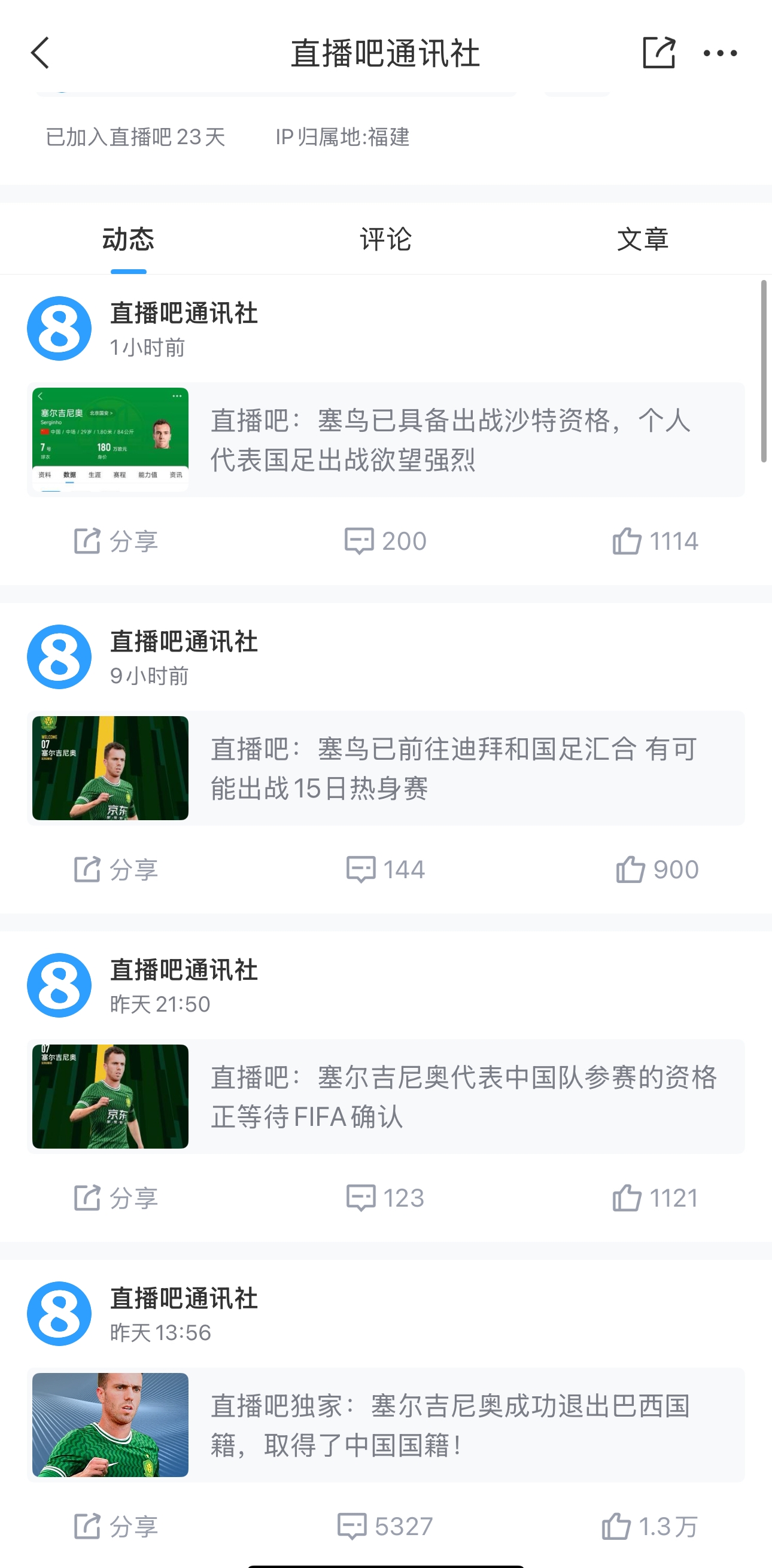 塞爾吉尼奧在社交媒體曬出了個人身份證,配文我是中國足球運(yùn)動員塞爾吉尼奧!正如3月12日的獨(dú)家消息,塞爾吉尼奧在昨天已經(jīng)完成入籍。正如通訊社的簡介一樣,將會努力為各位吧友帶來體壇獨(dú)家權(quán)威資訊,讓球迷能離事實(shí)更近一步。 本文標(biāo)簽: 足球 中國足球 中超 北京國安 中國男足