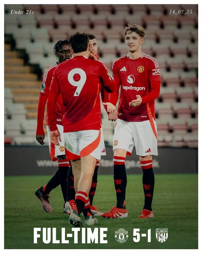 3月15日訊 在當(dāng)?shù)貢r(shí)間周五晚間進(jìn)行的英超二級(jí)聯(lián)賽中,曼聯(lián)U21隊(duì)主場5-1大勝西布朗U21隊(duì),位居積分榜第6位。