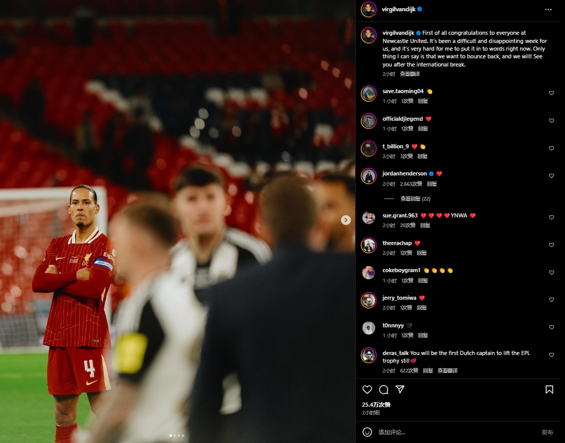 談及失利原因,范戴克分析道:“比賽很艱難。紐卡斯爾充分發(fā)揮了他們的強項——雖然聽起來像陳詞濫調(diào),但他們的對抗強度、犯規(guī)戰(zhàn)術、定位球設計都做得很好。我們給了對手信心,讓他們覺得今夜屬于自己。我們的表現(xiàn)確實不夠好,這讓人非常失望和痛苦?!?/p>