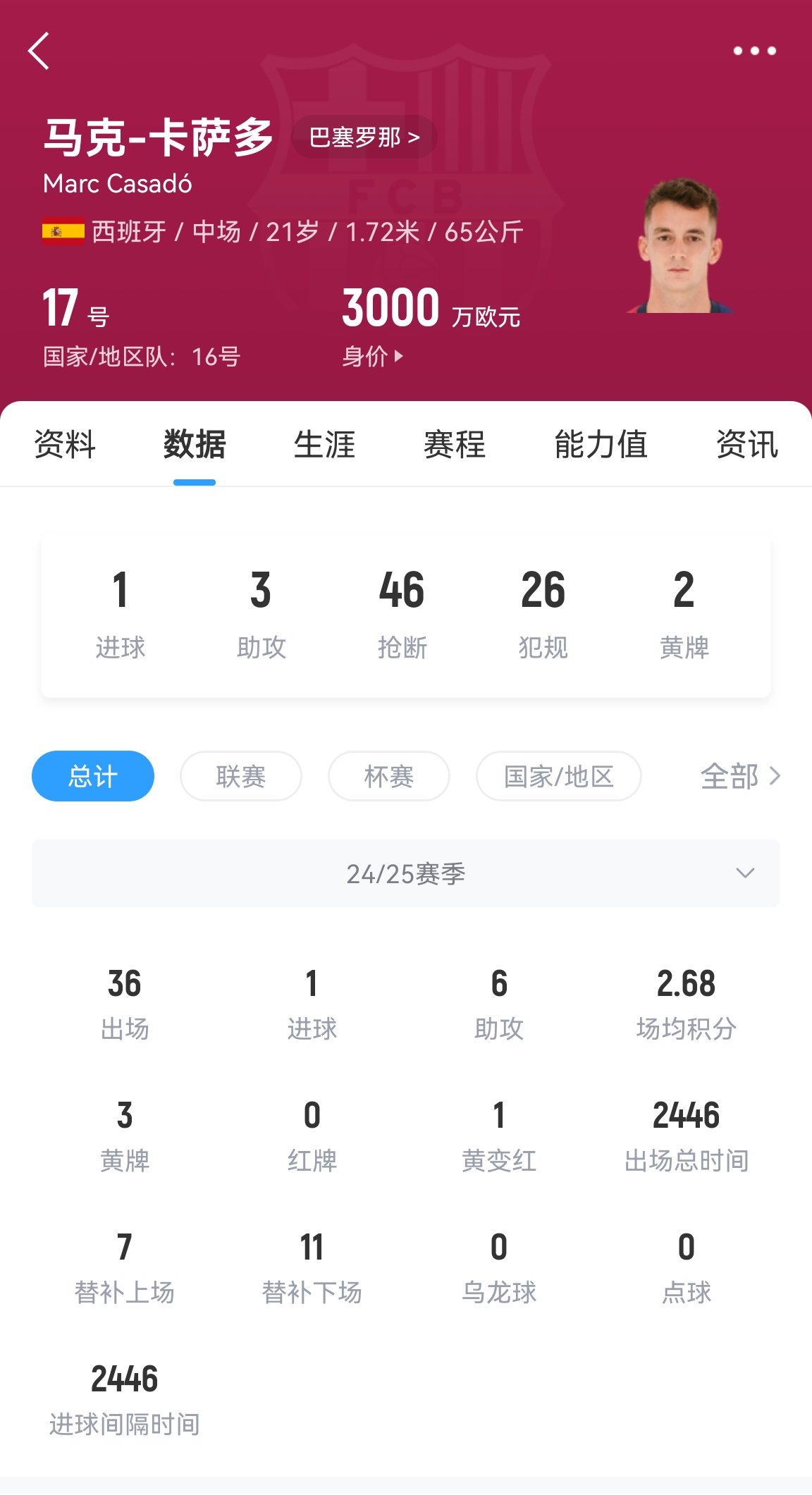 21歲的卡薩多本賽季出場36次,是巴薩重要的中場球員。在國家隊(duì)比賽日后,巴薩將迎來賽季沖刺階段,西甲方面與皇馬、馬競爭冠,國王杯對決馬競,歐冠對陣多特蒙德。