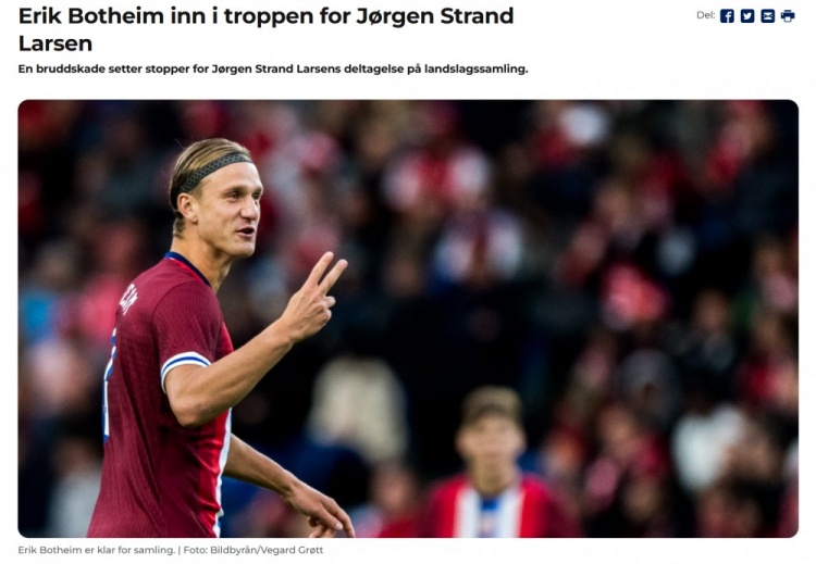 3月17日訊 官方消息,狼隊前鋒拉爾森因骨折退出本期國家隊,挪威補(bǔ)招25歲馬爾默前鋒埃里克-博特海姆。
