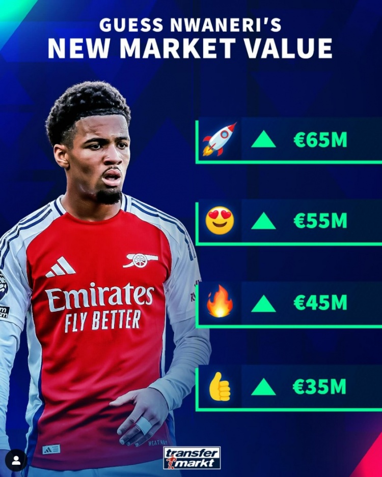 3月17日訊 德轉將在明日更新英超球員身價,德轉預熱阿森納小將恩瓦內里將是身價大漲的球員之一。17歲的恩瓦內里目前身價3000萬歐,德轉列出其更新后的4個可能身價,分別是3500萬歐、4500萬歐、5500萬歐以及最高的6500萬歐。恩瓦內里本賽季在29場各項賽事中已經貢獻8球1助攻。 本文標簽: 足球 英超 阿森納