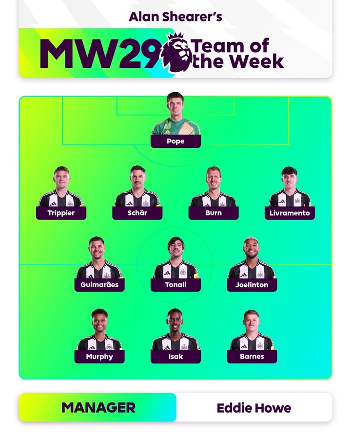 在昨天結束的聯賽杯決賽中,紐卡2-1擊敗利物浦,時隔70年再次奪冠。英超官方也調侃道,對于紐卡名宿希勒來說,本輪的最佳陣容只有一個,那就是紐卡在聯賽杯決賽中的首發(fā)陣容。