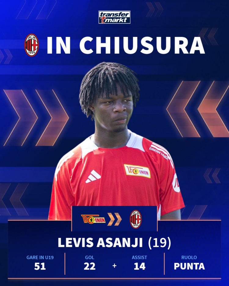 現(xiàn)年19歲的阿桑吉目前在柏林聯(lián)合U19效力,一共出場(chǎng)51次貢獻(xiàn)22球14助攻,本賽季出場(chǎng)14次打進(jìn)10球,預(yù)計(jì)他將在周一接受加盟米蘭的體檢。