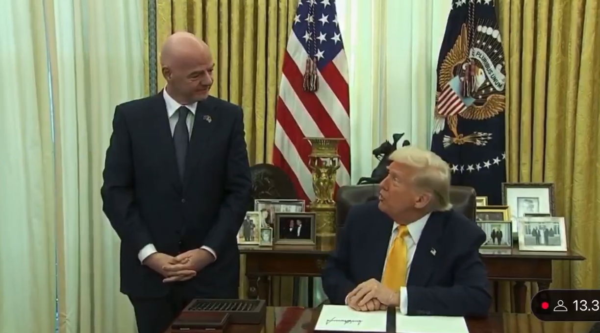 特朗普此前問美國能否贏下2026世界杯,因凡蒂諾回答:當(dāng)然有機(jī)會(huì)。