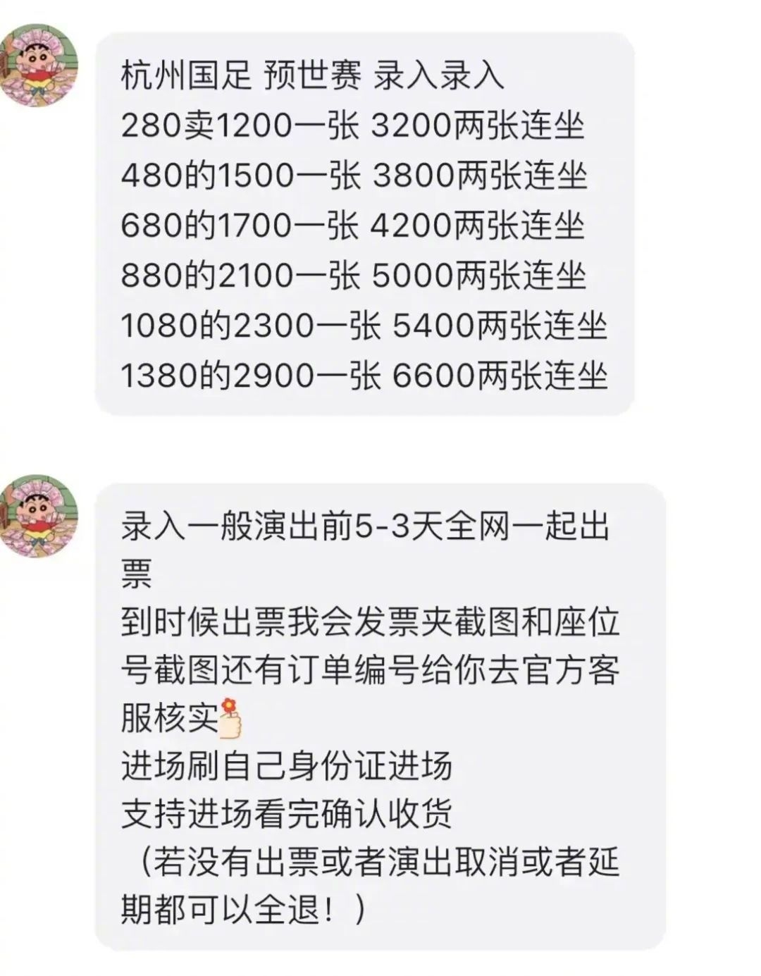 3月10日,中國新聞周刊聯(lián)系上某賣家,并提出希望求購3月25日國足球票,賣家表示,自己手中還有部分存票。每張加價1000—1500元不等。但到了3月18日,這個價格再次攀升,票面價格1380元的球票需要支付6500元方可購買,而如果需要連號球票或是位置更佳座位,價格將達(dá)到近萬元。