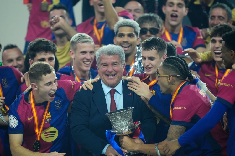 對(duì)巴薩而言,2025年的開局堪稱完美。除了以歐冠聯(lián)賽階段第2名的排位避開2月份的附加賽,以及聯(lián)賽中逐漸顯現(xiàn)的復(fù)蘇跡象(盡管上賽季末的表現(xiàn)令人心碎),球隊(duì)還斬獲了賽季首冠——西班牙超級(jí)杯,這也是弗利克時(shí)代的首個(gè)冠軍獎(jiǎng)杯。這場(chǎng)勝利意義非凡,不僅因?yàn)榍蜿?duì)擊敗的對(duì)手是擁有姆巴佩的皇馬,更因其戲劇性的奪冠過程。值得一提的是,這場(chǎng)勝利恰逢奧爾莫和保-維克托的注冊(cè)爭(zhēng)議事件,而主席拉波爾塔在前往觀看對(duì)陣畢爾巴鄂競(jìng)技的半決賽時(shí),甚至被拍到在球場(chǎng)入口處做出挑釁手勢(shì)。