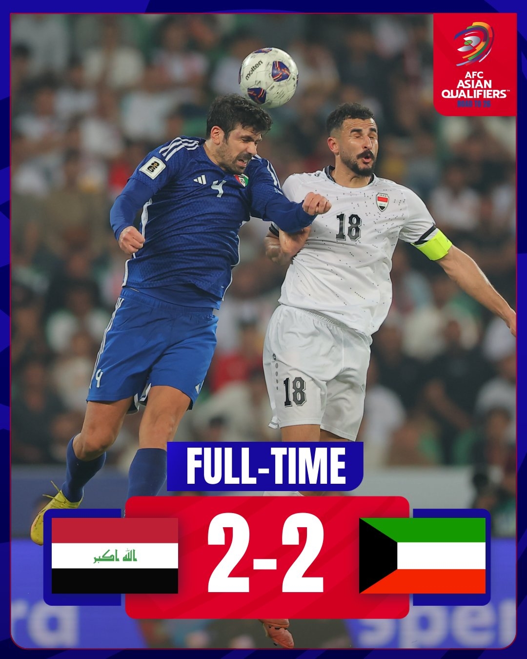 3月21日訊 在本輪世預(yù)賽亞洲區(qū)比賽中,伊拉克2-2戰(zhàn)平科威特。本場比賽科威特球員尤塞夫-納賽爾在第39分鐘、70分鐘梅開二度 幫助球隊取得兩球領(lǐng)先,而伊拉克則是在傷停補時階段連進兩球扳平比分,分別是第93分鐘阿卡姆-哈希姆破門,101分鐘拜阿什上演絕平。本場過后伊拉克在小組中以12分位列第3位,科威特5分位列第5位。 本文標簽: 足球 國家隊