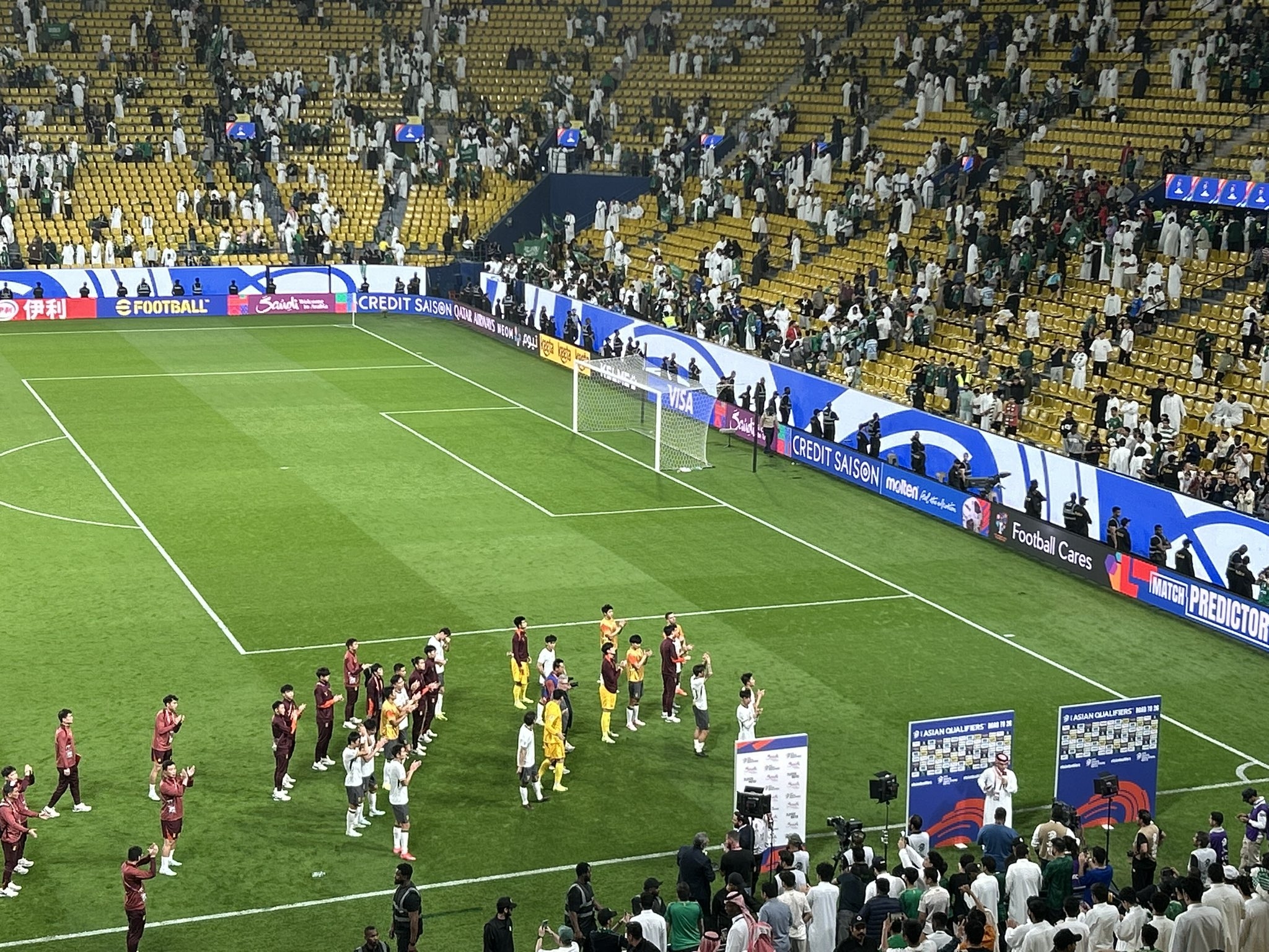 客場(chǎng)遺憾落敗,國(guó)足球員賽后向球迷謝場(chǎng)