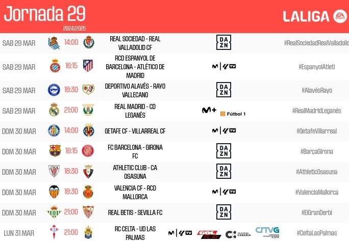 西甲第29輪賽程(以下均為北京時(shí)間)↓