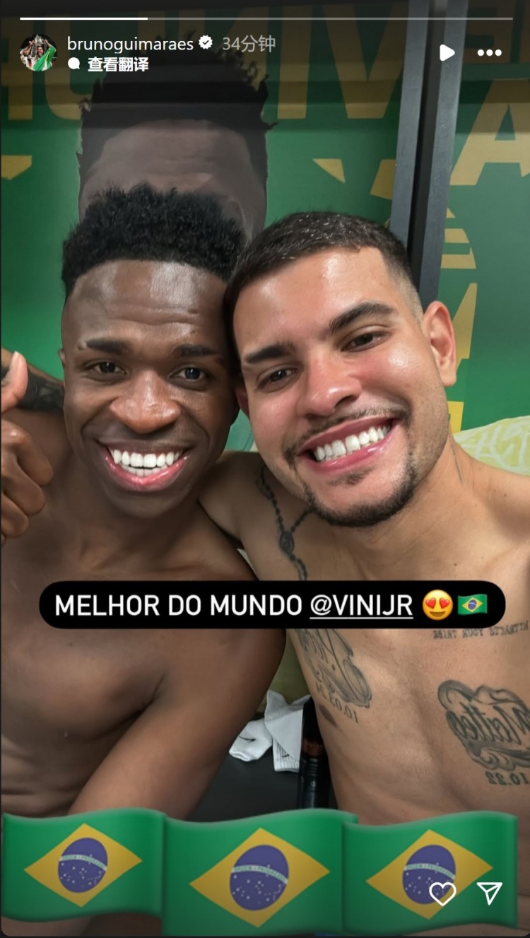 3月21日訊 在北京時間今天上午進行的世預(yù)賽中,吉馬良斯為巴西首發(fā)出戰(zhàn),最終巴西憑借維尼修斯的絕殺進球主場2-1擊敗哥倫比亞。吉馬良斯社媒曬出與絕殺功臣維尼修斯的合照,并配文:“世界最佳,維尼修斯?!?/p> 本文標簽: 足球 西甲 皇家馬德里 英超 紐卡斯爾聯(lián) 巴西