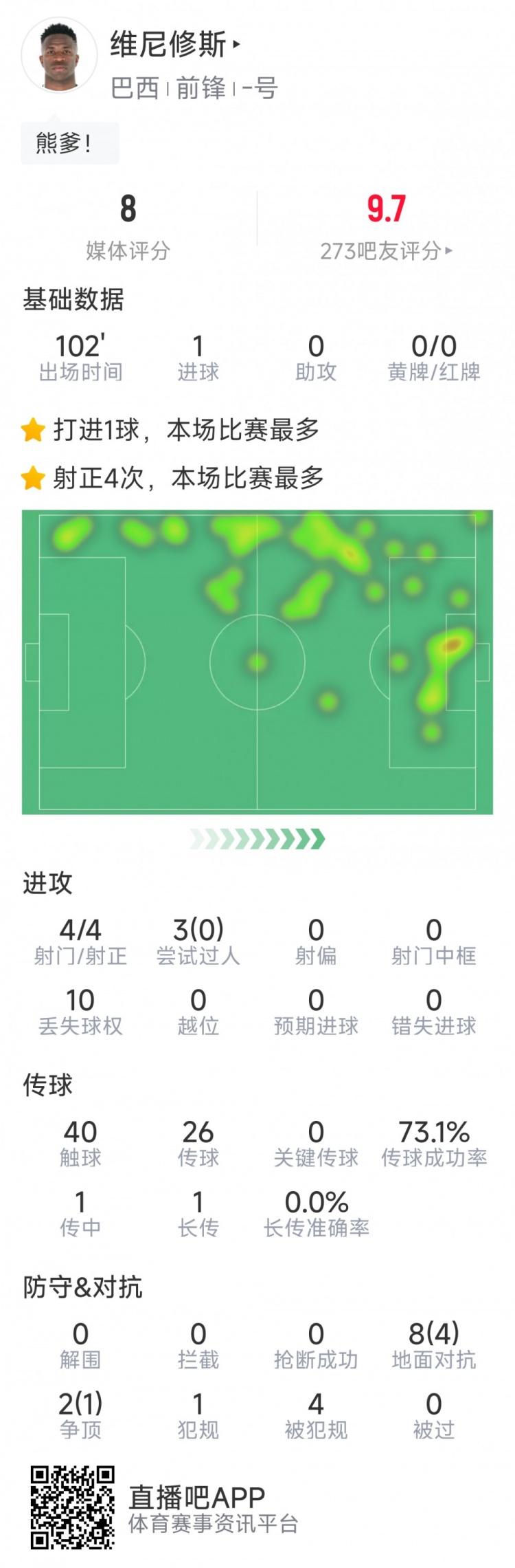 3月21日訊 在本輪世預(yù)賽南美區(qū)比賽,巴西2-1擊敗哥倫比亞,維尼修斯打進絕殺,以下為他在本場數(shù)據(jù):比賽時間102分鐘1粒進球4次射門均射正40次觸球傳球成功率73.1%10次對抗5次成功3次過人0成功評分8分 本文標(biāo)簽: 足球 國家隊 巴西 西甲 皇家馬德里