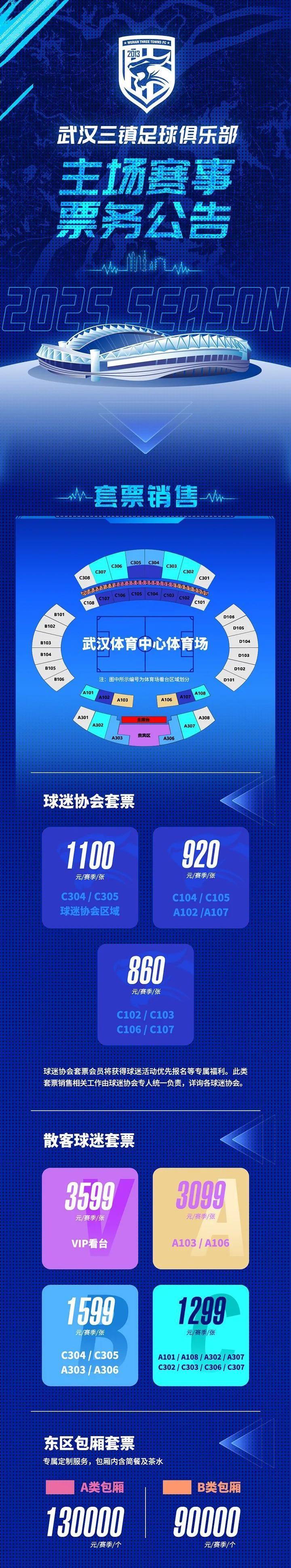 2025賽季武漢三鎮(zhèn)足球俱樂部主場票務(wù)銷售通道將于3月21日18:00正式開啟,全賽季套票即將進行發(fā)售。多種套票類型可供選擇,滿足廣大球迷朋友的觀賽需求,歡迎大家選購。