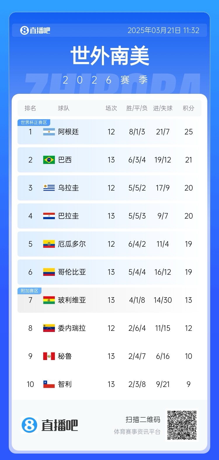 03月21日訊 世預(yù)賽南美區(qū)第13輪,智利0-1不敵巴拉圭,排名跌至南美區(qū)倒數(shù)第一,晉級世界杯前景不容樂觀。