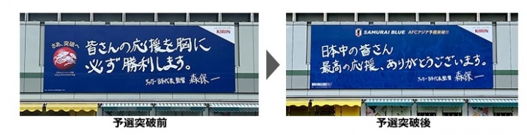 據(jù)日本足協(xié)報道,在日均人流量達300萬的日本新宿地鐵站南面出口的一處看板上,在世預賽前后都換上了森保一親筆寫下的感謝語。據(jù)悉,自3月16日到鎖定世界杯參賽資格前,看板內(nèi)容為:“我們會將大家的聲援銘記在心,與巴林一戰(zhàn)我們一定會取勝?!?/p>