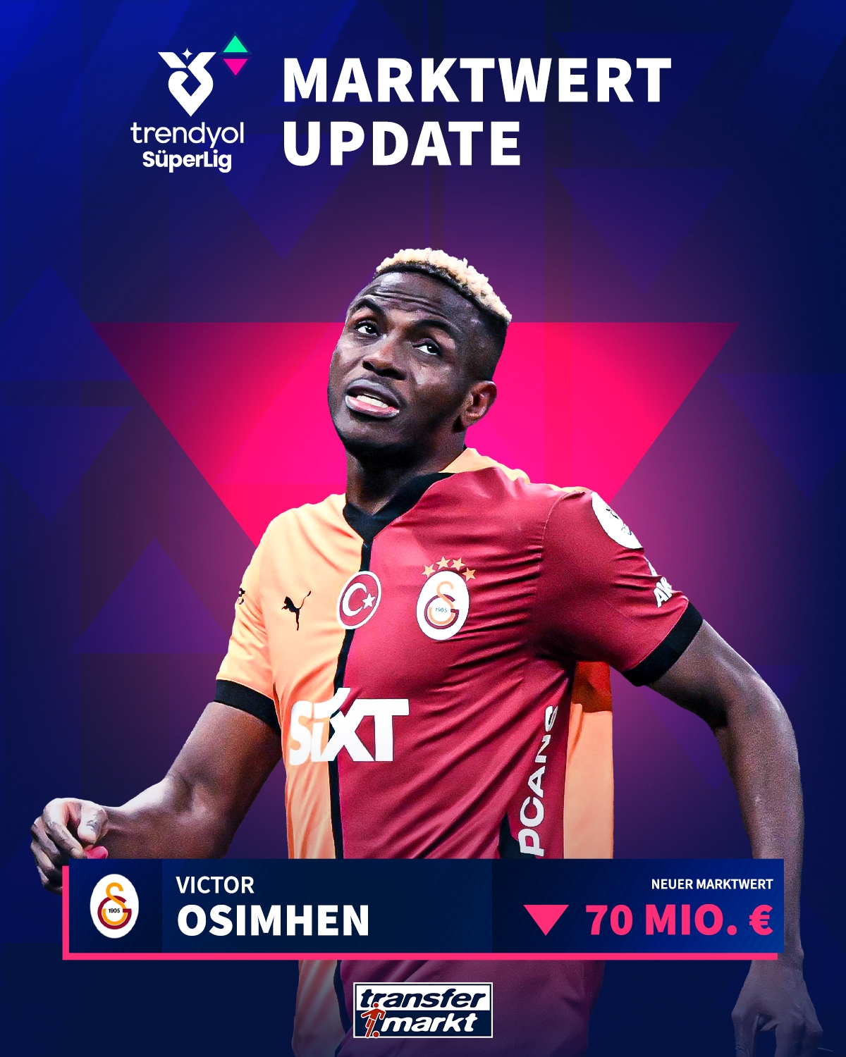 自夏窗從那不勒斯租借加盟加拉塔薩雷以來,奧斯梅恩的身價已經(jīng)從1億歐,不斷下跌來到7000萬歐。