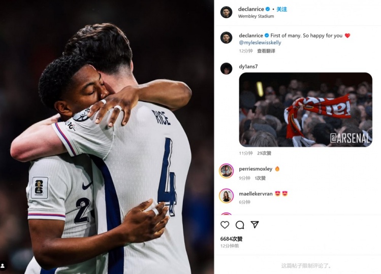 3月22日訊 英格蘭在本輪世預(yù)賽2-0擊敗阿爾巴尼亞,小將斯凱利首秀破門。第19分鐘,貝林厄姆中路原地轉(zhuǎn)身擺脫,隨后送出精準直塞,斯凱利插上面對斯特拉科沙低射穿襠入網(wǎng)。作為雙料隊友的老大哥賴斯也在賽后通過社媒曬出兩人的擁抱照,并配文:“未來眾多進球里的第一個!我為你感到非常開心??@斯凱利”。 本文標簽: 足球 英超 阿森納 國家隊 英格蘭 阿爾巴尼亞