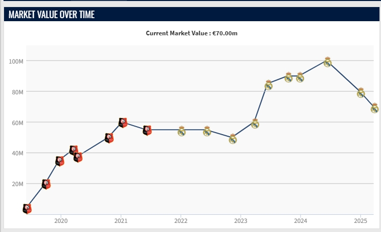 昨日德轉(zhuǎn)更新西甲球員身價,22歲的皇馬中場卡馬文加再降1000萬,最新身價為7000萬歐。去年6月,卡馬文加巔峰身價達到1億歐。但他本賽季頻繁受到傷病困擾,出場和狀態(tài)也深受影響。 本文標簽: 足球 西甲 皇家馬德里