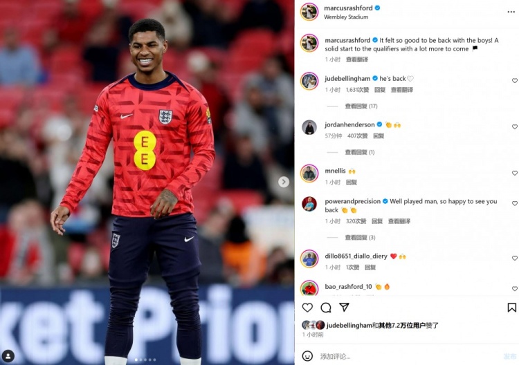3月22日訊 在歐洲區(qū)世預(yù)賽首輪,英格蘭2-0擊敗阿爾巴尼亞。本場比賽拉什福德首發(fā)上陣,賽后他也在個人社媒曬出笑容滿面的訓(xùn)練照,配文寫道:“重回球隊并與這些隊友重聚感覺太棒了,為世預(yù)賽奠定堅實(shí)的基礎(chǔ),后面還有更多挑戰(zhàn)!” 本文標(biāo)簽: 足球 英超 阿斯頓維拉 國家隊 英格蘭
