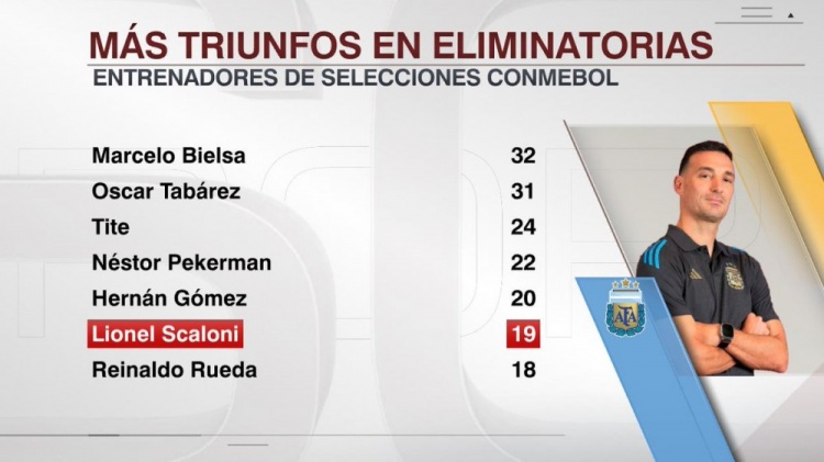 3月22日訊 在北京時間今天上午結(jié)束的世預(yù)賽中,阿根廷客場1-0擊敗烏拉圭。據(jù)ESPN統(tǒng)計,此役是斯卡洛尼帶領(lǐng)阿根廷隊在南美世預(yù)賽取得的第19場勝利,世預(yù)賽勝場數(shù)排名南美國家隊主帥第6位。南美國家隊主帥世預(yù)賽勝場排名:貝爾薩——32塔巴雷斯——31蒂特——24佩克爾曼——22埃爾南-戈麥斯——20斯卡洛尼——19魯埃達——18 本文標(biāo)簽: 足球 阿根廷