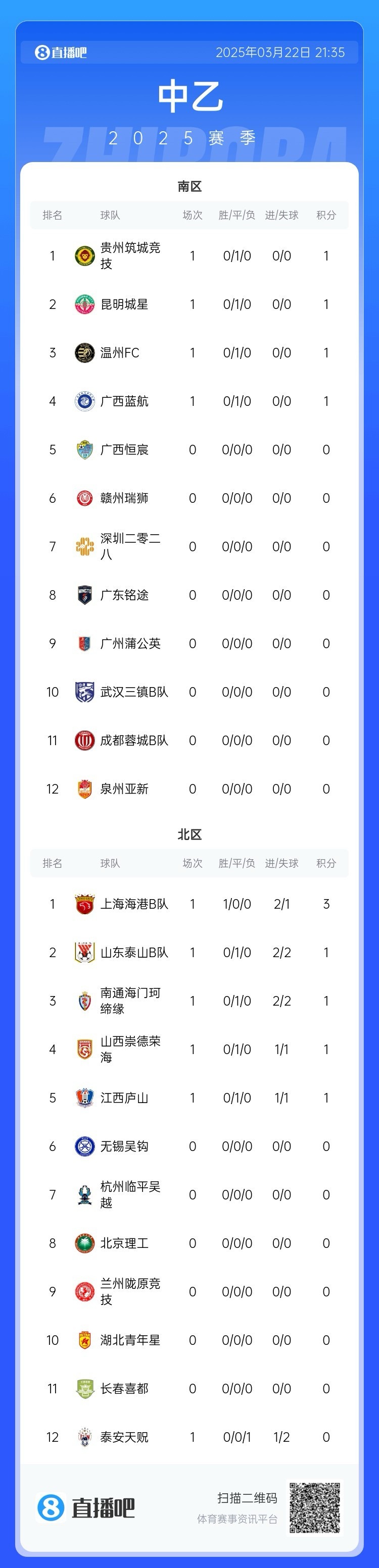 3月22日訊 2025賽季中乙聯(lián)賽今天拉開(kāi)帷幕,在首日進(jìn)行的5場(chǎng)比賽中,海港B隊(duì)擊敗泰安天貺,泰山B隊(duì)2-2海門(mén)珂締緣。