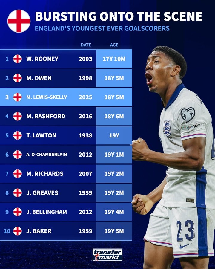 3月22日訊 今天凌晨,英格蘭2-0擊敗阿爾巴尼亞,斯凱利首秀破門,德國轉(zhuǎn)會市場統(tǒng)計,斯凱利是英格蘭隊史第三年輕的進(jìn)球者。